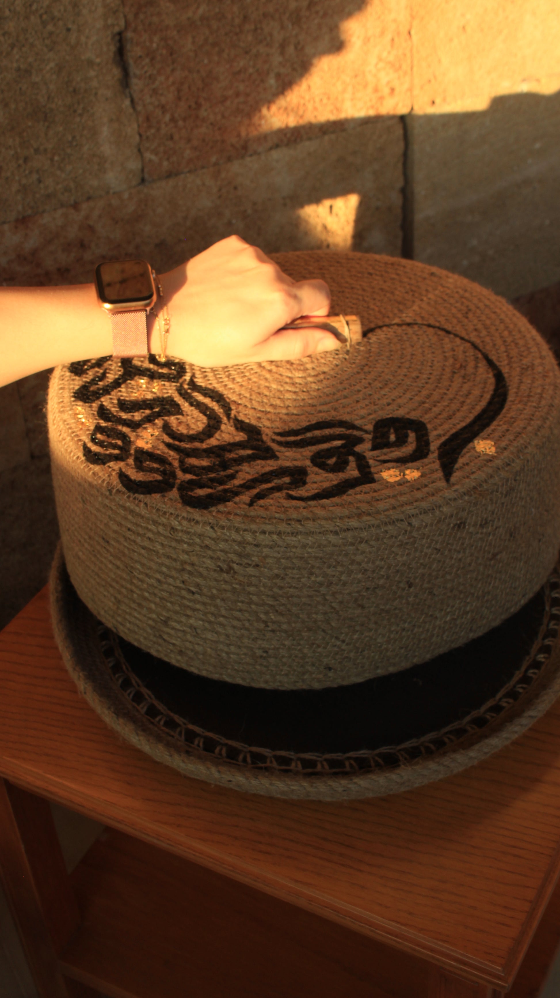 Handmade hard wood plate with a cover basket , arabic handprinted deisgn " كن جميل الخلق تهواك القلوب "