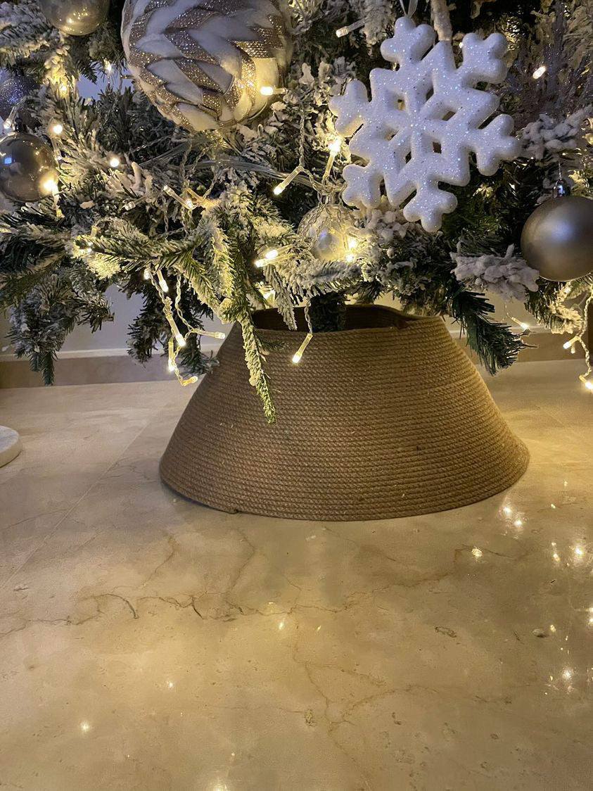 Christmas tree base cover made from jute rope available in several sizes.