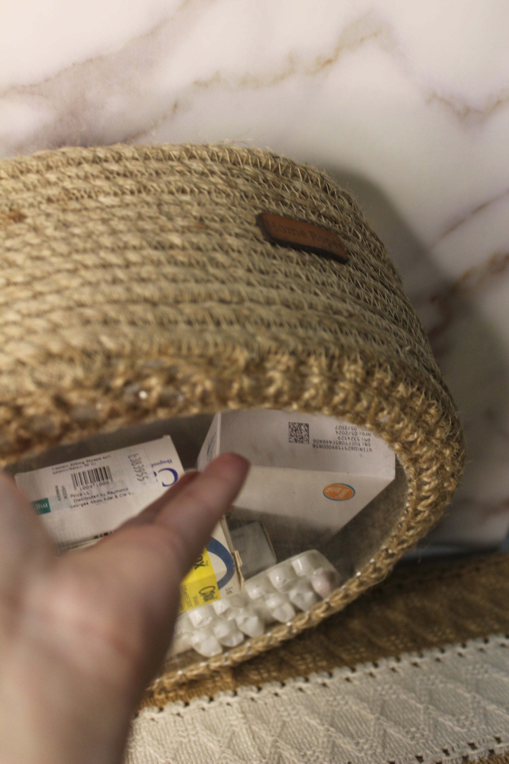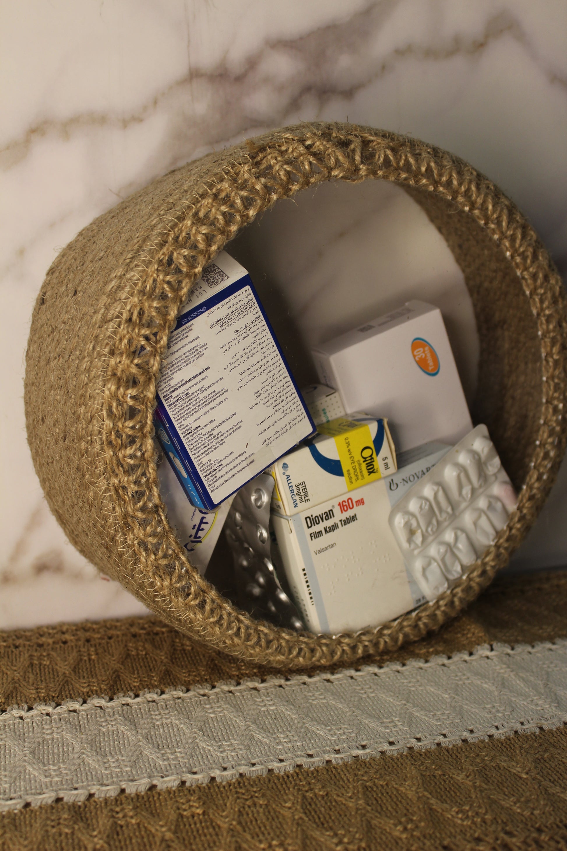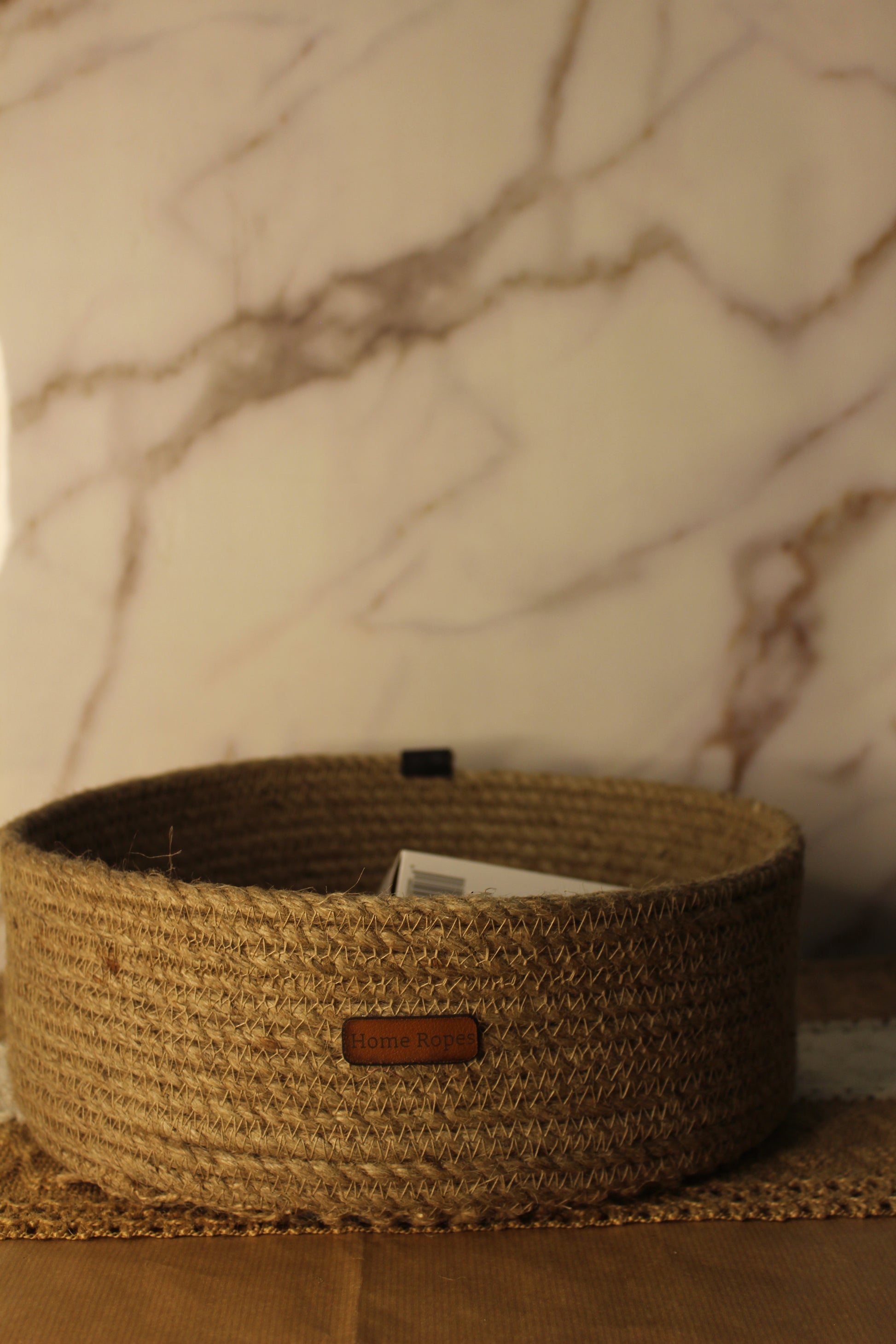 Handmade basket with a plexiglass base made out of natural jute ropes