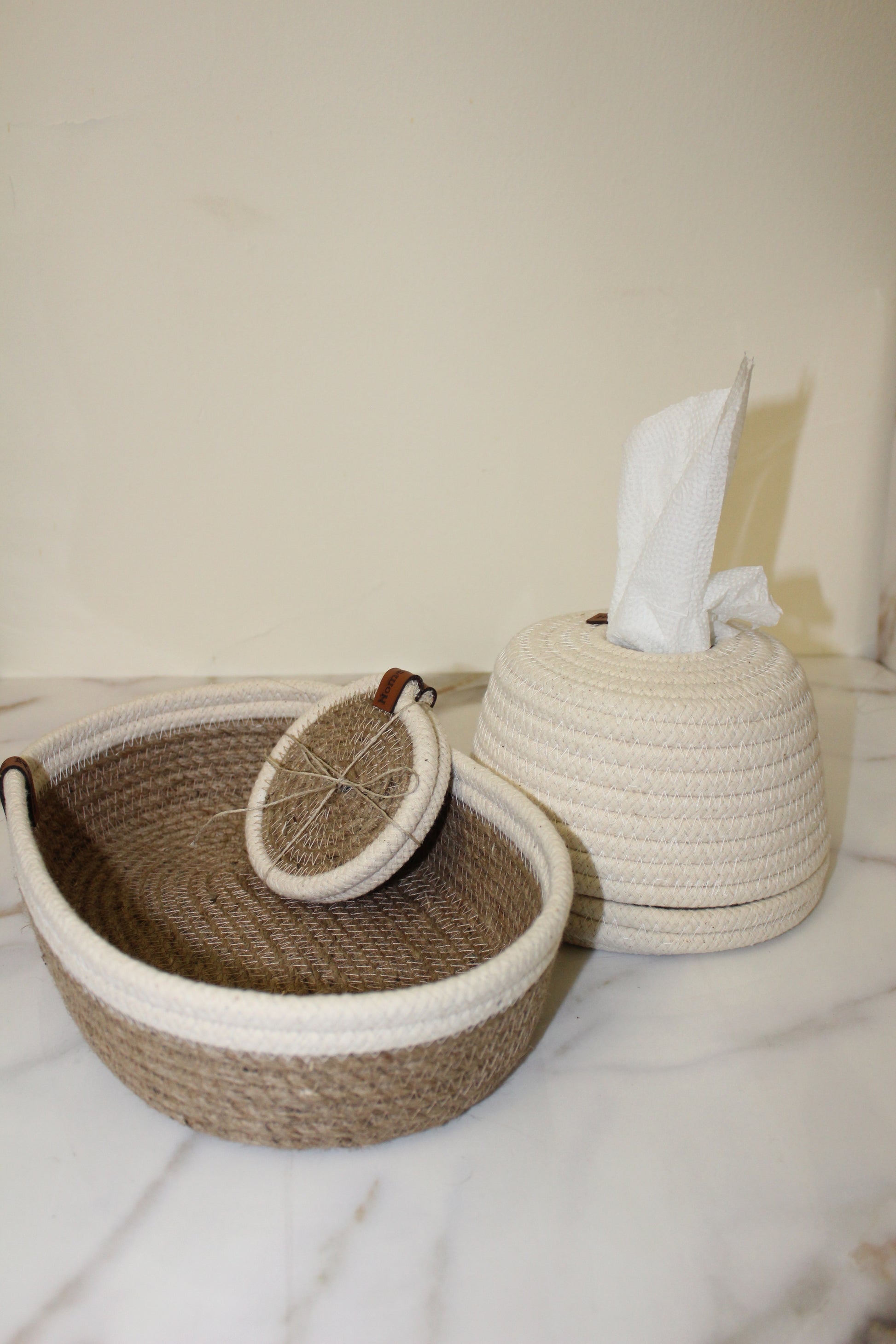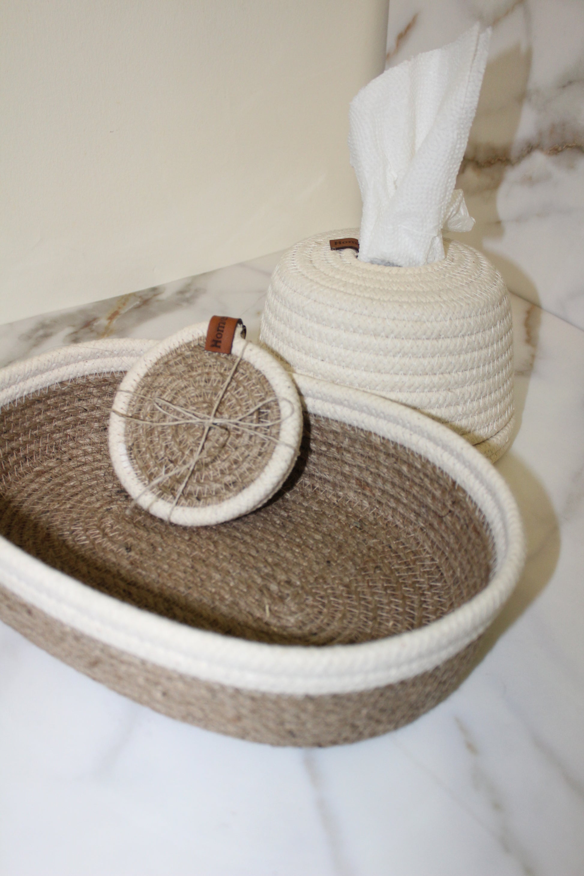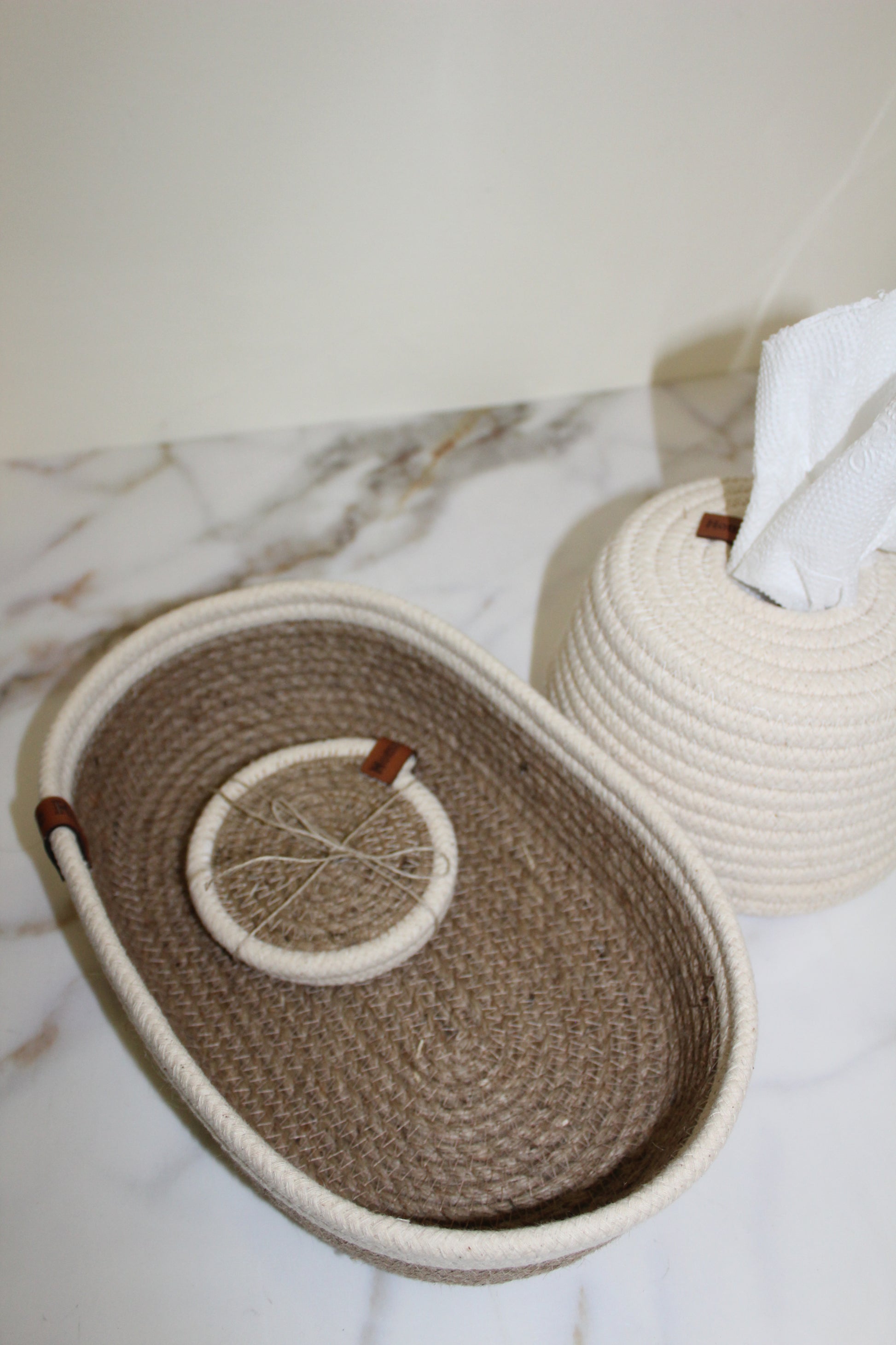 1 tissue- box 2 coasters- 1 oval basket