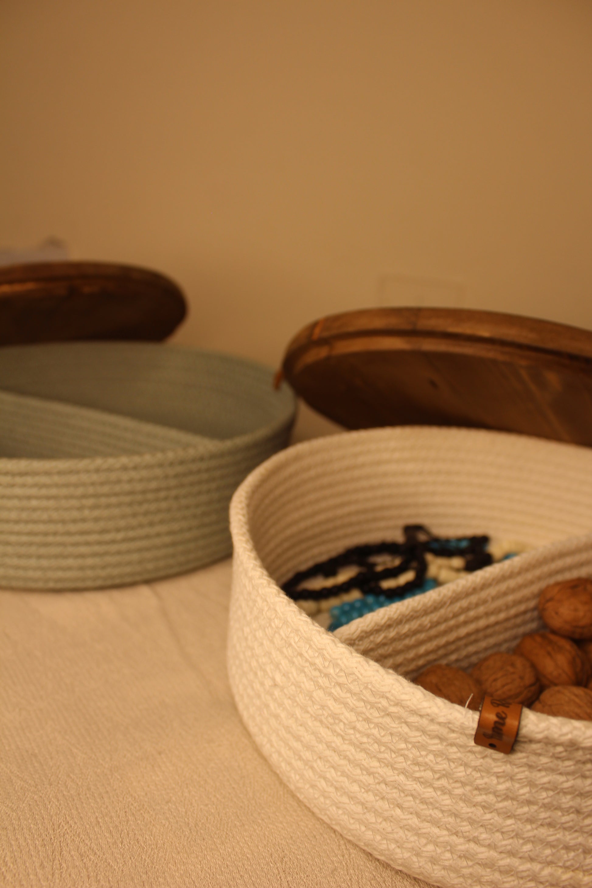 Handmade Cotton Rope Basket – 35cm with Wooden Lid & Separator