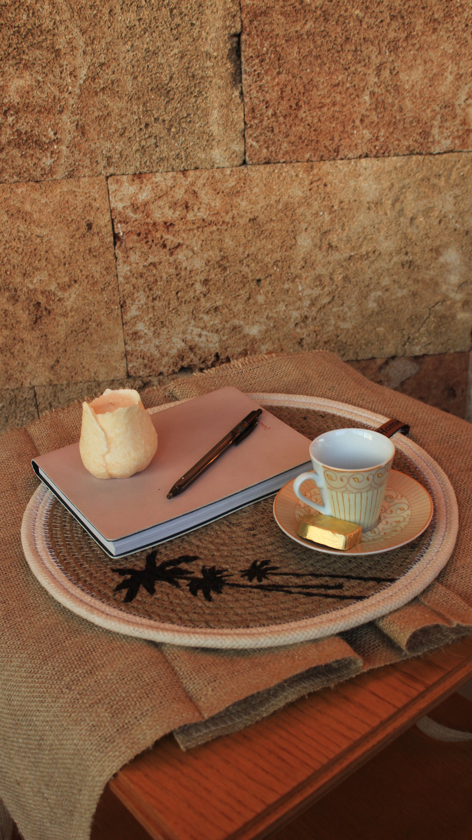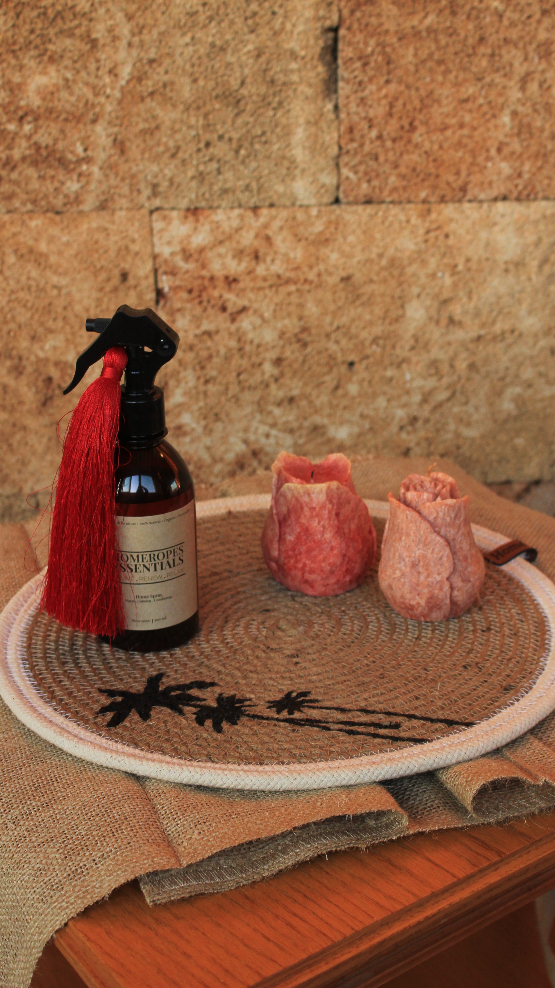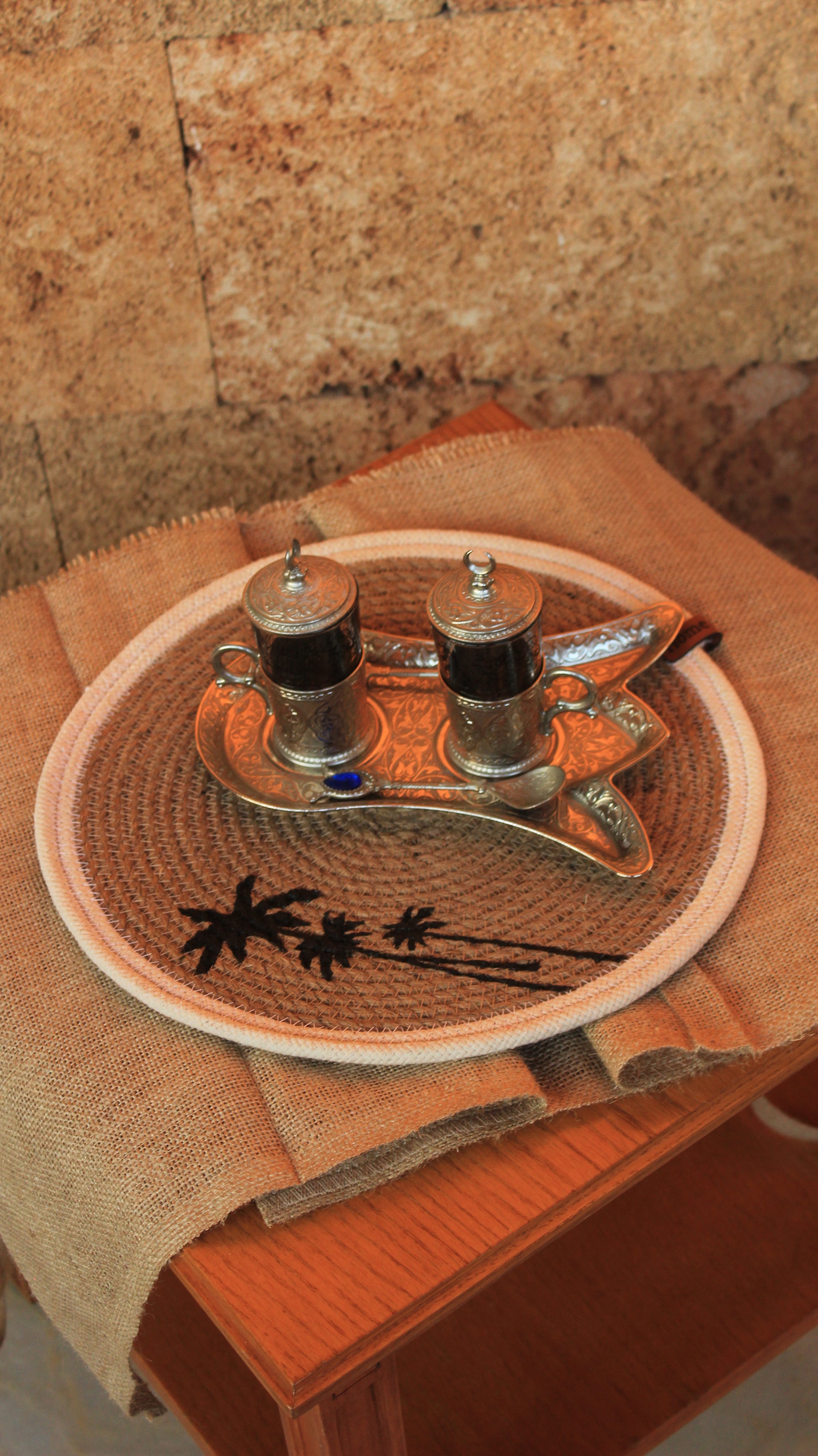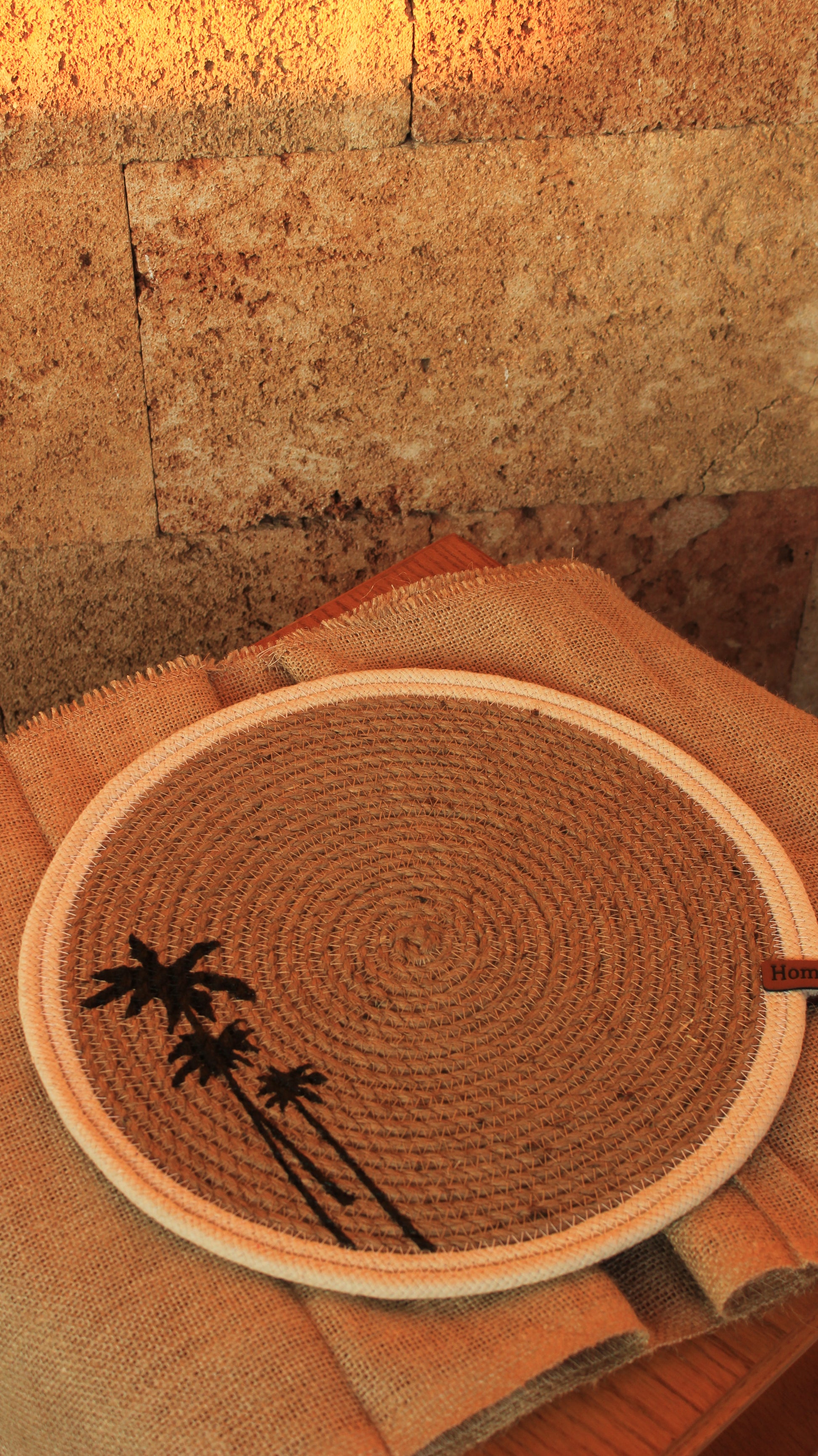 set of 6 pcs handmade placemats , natural jute with a hand painted deisgn , you can choose the broader color in the options bellow